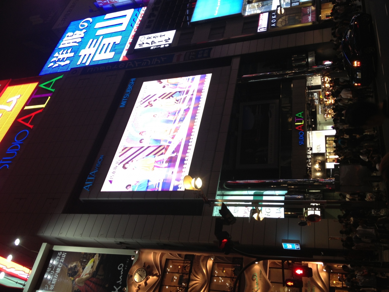 新宿東口での待ち合わせとしている人が多くいつもアルタ前は混雑しています。「笑っていいとも!」の収録があることで知られる「スタジオアルタ」も入っています。