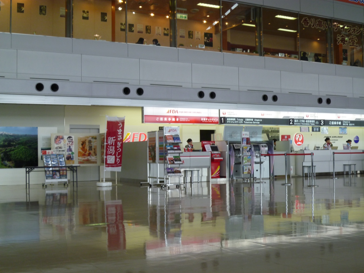 新潟空港は日本海側を代表する空港の一つです。新潟市内なので新潟市内から空港へのアクセスも便利です。定期の国際線もありターミナルも大きいです。新千歳・成田・大阪伊丹・福岡・沖縄(季節運航)等に路線があります。福岡へはFDA(フジドリームエアライン)が就航しています。