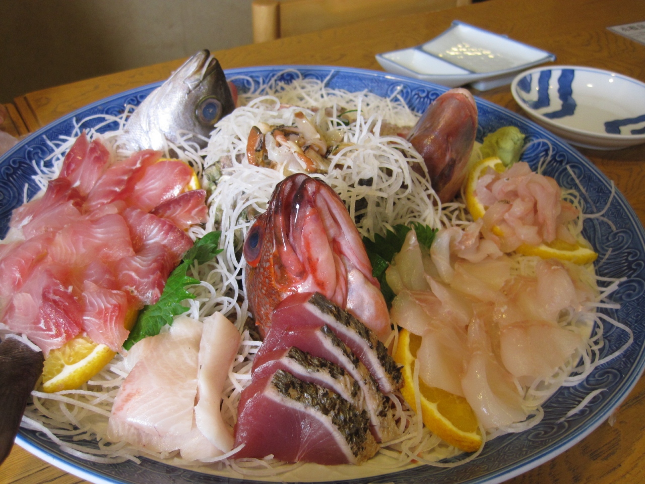 3150円の刺し盛りのネタが地魚3種(日替わりでタイやらムツやらカワハギ、イサキなどとサザエは毎回)で、マグロはオマケにちょびっと、というところがたまりません!