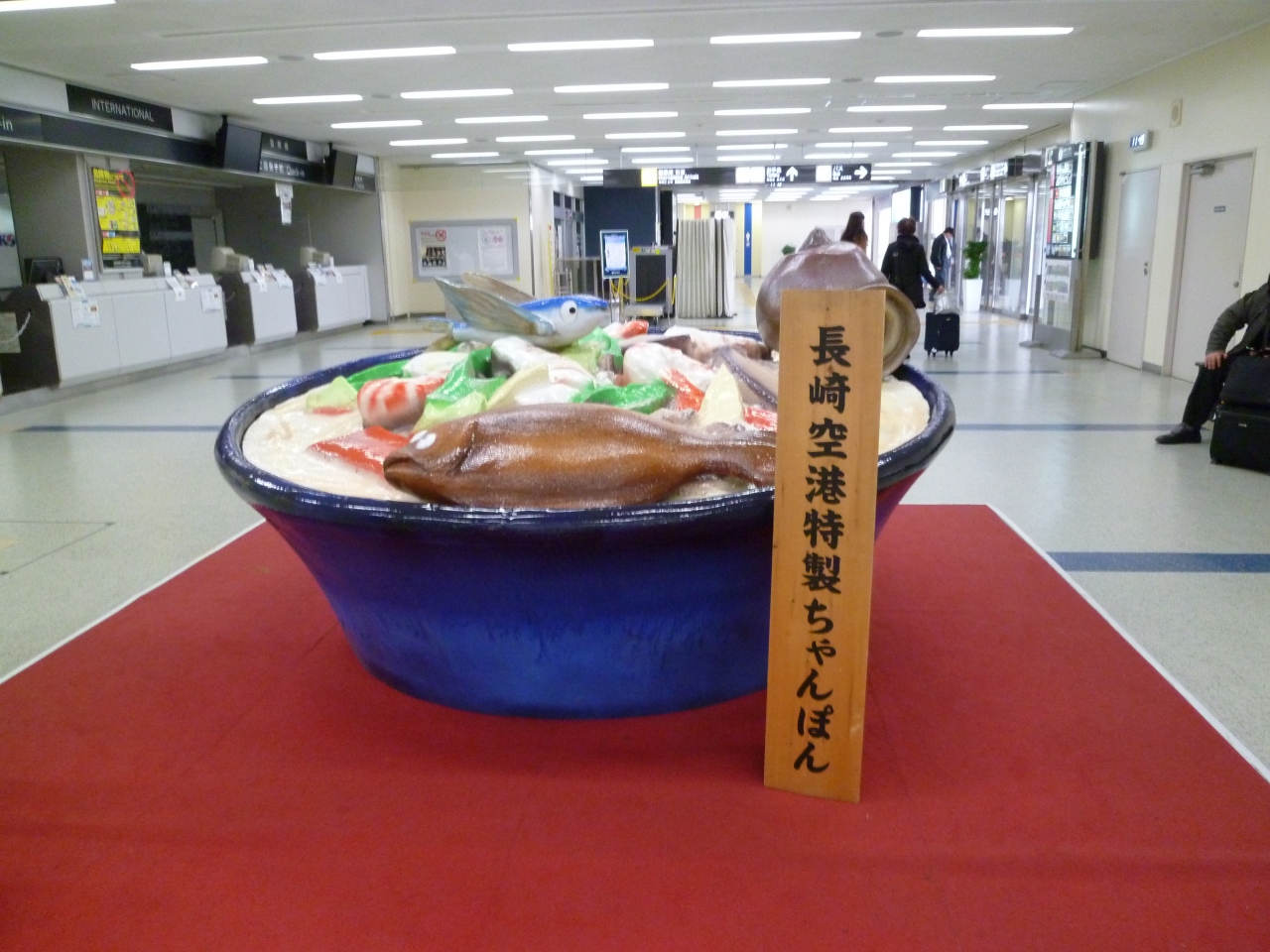 長崎市内へはバスで50分位かかります。タクシーだと通行料込みで11.000円でした。日本初の海上空港で大村市街地とは橋でつながっています。レストランやお土産店は大変充実しています。カウンターや各店舗職員の対応も良く気持ちの良い空港です。