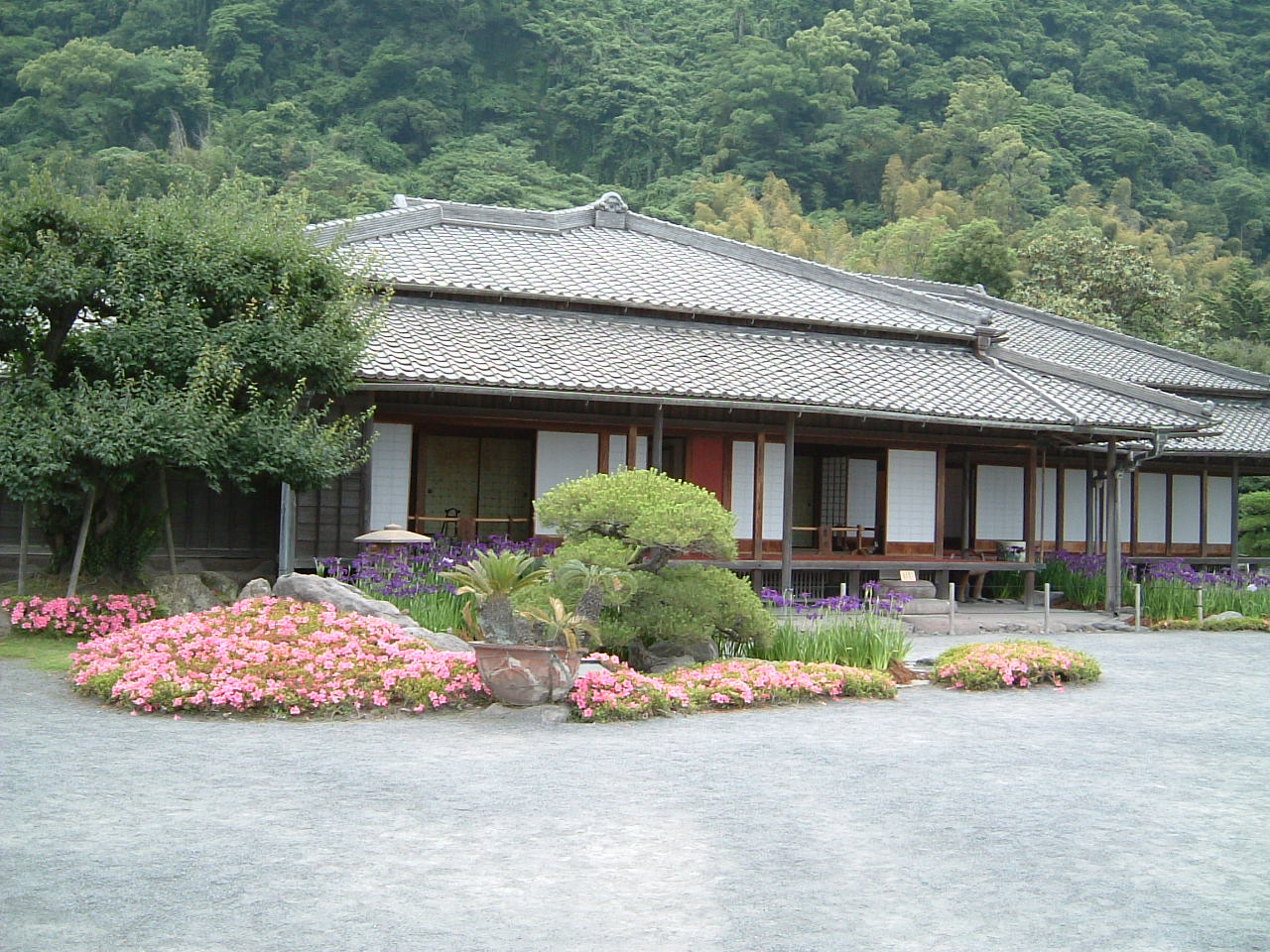 島津家の別邸として建てられた物で、桜島を築山に、錦江湾を池に見立てた壮大な庭園であり、さまざまな植物が四季折々の表情を見せてくれます、工場群の跡地で大砲を鋳造した反射炉跡や、機械工場などが残されています、鉄製150ポンド砲は見事なものです。