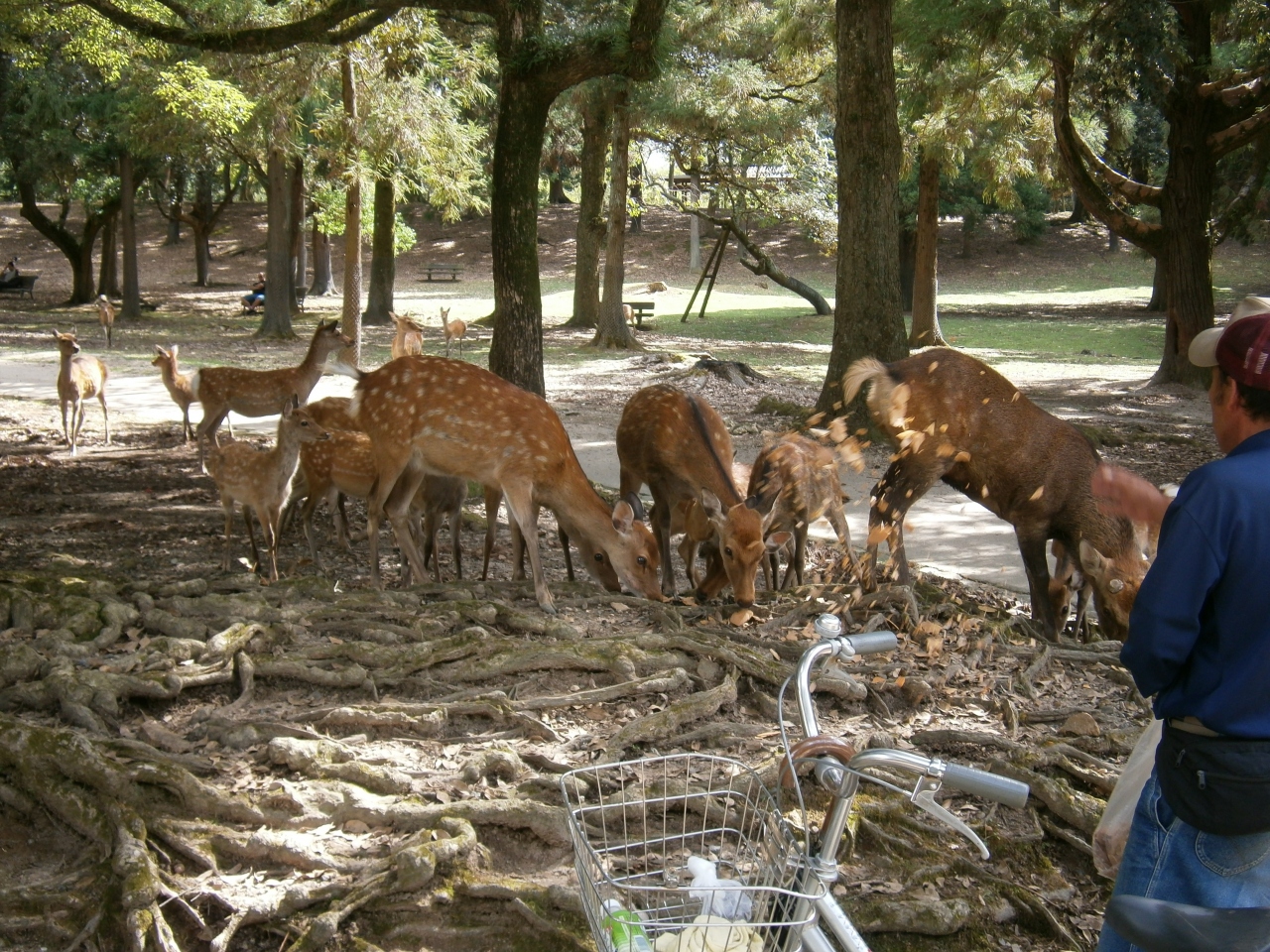 鹿に囲まれて、ちょっと怖い思いをしたりします。