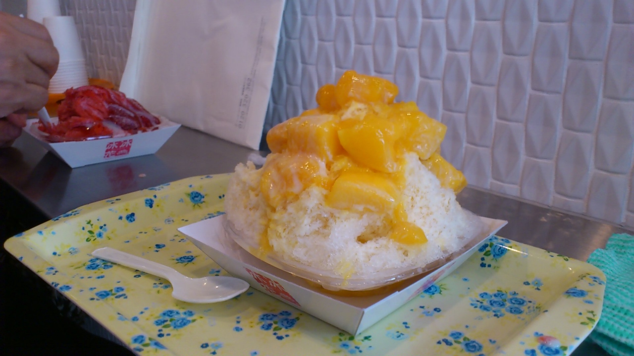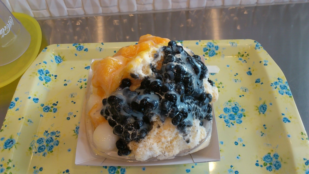 中之島にあるリーガロイヤルホテル大阪からタクシーで行ったところ、初乗り運賃で到着。歩いても10分くらいだろうか。国道1号線の大通りに面し、ひときわ目立つピンクの看板に「冰冰花」と書かれた場所が夏季限定でオープンしているお店だ。座席はカウンターのみの6席だけ。残念ながら店内に待てる場所はないので、炎天下でも広い歩道で待つことになる。応対してくれたスタッフの人はお店の名前にあるように台湾の方だった。10分ほど待ってようやく席が空き、注文を受けてもらい、カウンターの椅子に座る。オーダーするまでの待ち時間は長かったが、かき氷は当然ながらすぐに出てきた。味はというと・・・難しいところである。このお店の削り方はかなり粗い。どうしても口の中でジャリジャリと舌に残る。それが好きか嫌いかで好みの分かれるところではないだろうか。ふわふわした雪のようなかき氷が好きという向きには気に入られにくいのでなないかと思った。今年のような暑さの中で、ガツンとくるかき氷がたべたい向きにはお奨めである。