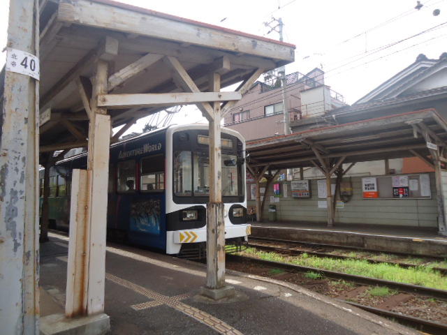 阪堺線で天王寺から来る線になります。天王寺から帝塚山4丁目まで車と同じ道路を走っていましたがこからはちんちん電車専用の線を走ります。また、駅もコンクリートで一段高くしている簡単な作りから駅舎になっています。