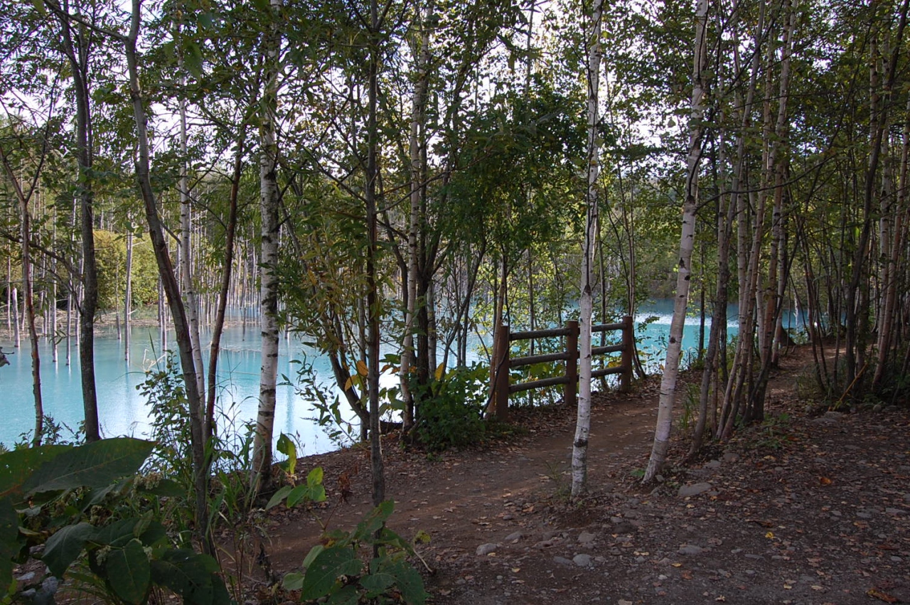 歩道も川まで整備され、駐車場も設置され便としては良くなってきてはいましたが、池の存続が少々心配でした。今日の色は(9/28)コバルト色ではなく少々白っぽい感じでした。その日によって色が変わることは聞いて知ってましたが・・・・・。