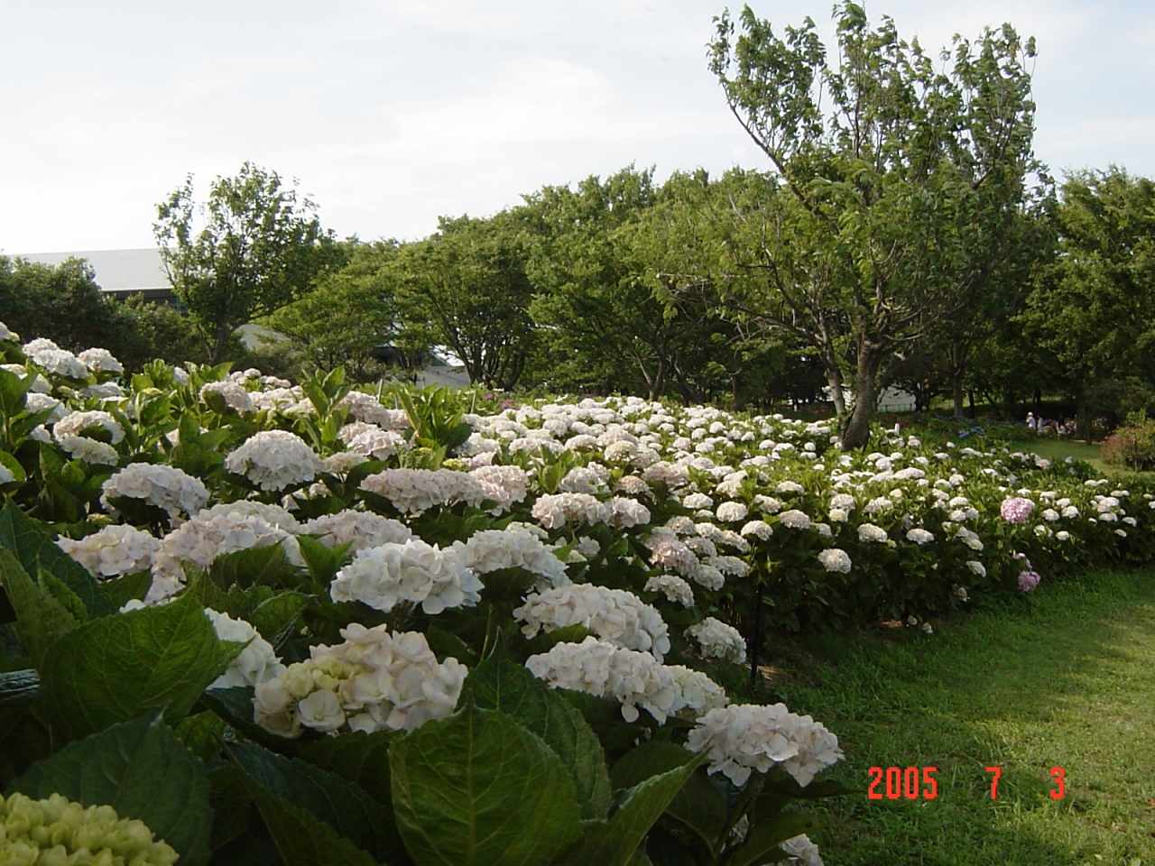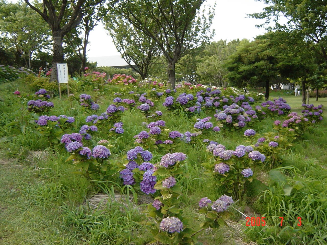 館内の写真展示のほか、広大な庭園の紫陽花も見どころとなっており花の季節には市民で賑わう。