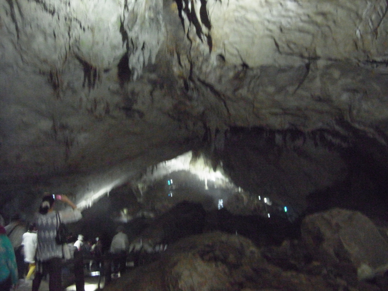 秋芳洞の中にある、上の方から鍾乳石がいくつも伸びてきている場所です。とても鍾乳洞らしい場所ですが、他の鍾乳洞でも見られる風景なので、秋芳洞の中では比較的地味な感じなので、通り過ぎてしまいそうになります。