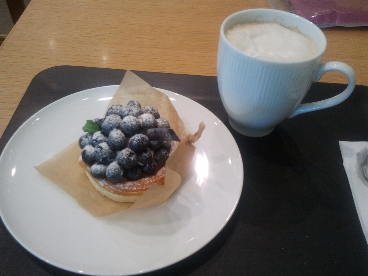 ちょうどきのとやの季節のケーキ、ブルーベリーのタルトが見るからに美味しそうだったので、私は迷わずそれを選んでしまいました。見た目だけではなく、本当に上品な美味しいタルトだったので満足です。コーヒーとセットで約750円でした。