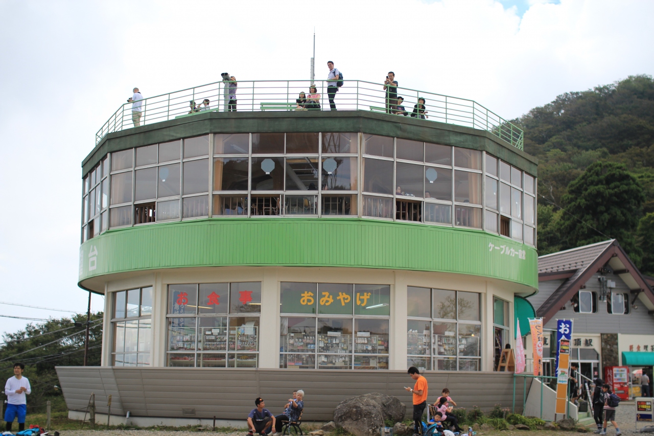 筑波山の山頂にある回転展望台で、ロープウェイの駅のすぐそばにあります。