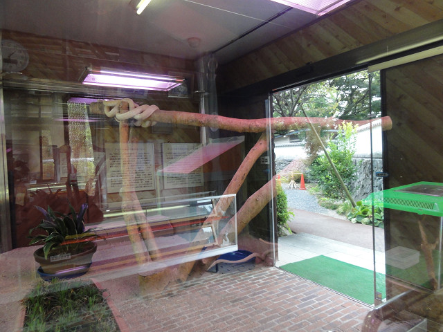 錦帯橋を渡り、吉香公園の大噴水を目指します。噴水が見えたら道を右折、白蛇観覧所があります。岩国だけに生息してる天然記念物になっているそうです。