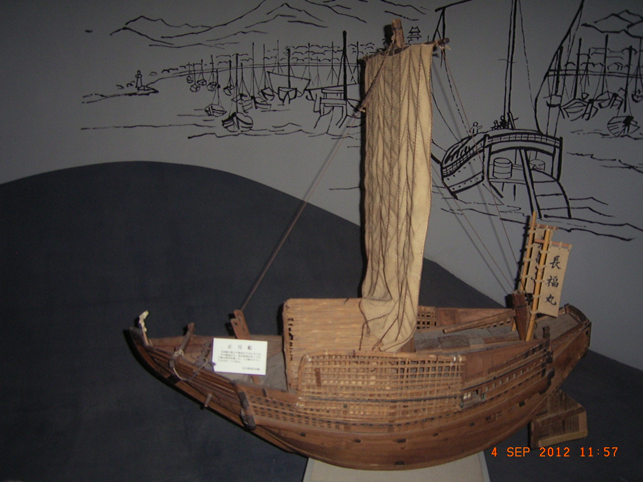 松前城からは北東に約15分かかります。徳山大神宮の近くにあります。町民総合センターの中にあり、役所の支所や図書館などと一緒です。松前の古代からの歴史がわかるように展示がなされています。特に松前船のモケイは興味をもちました。