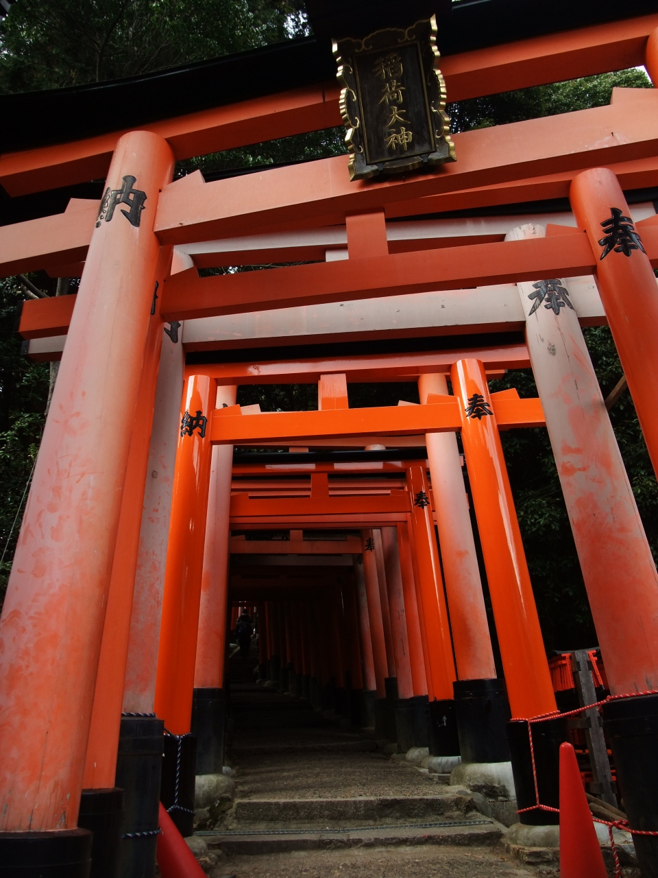 鳥居がいくつも重なってそれがずっと続くという不思議な空間。