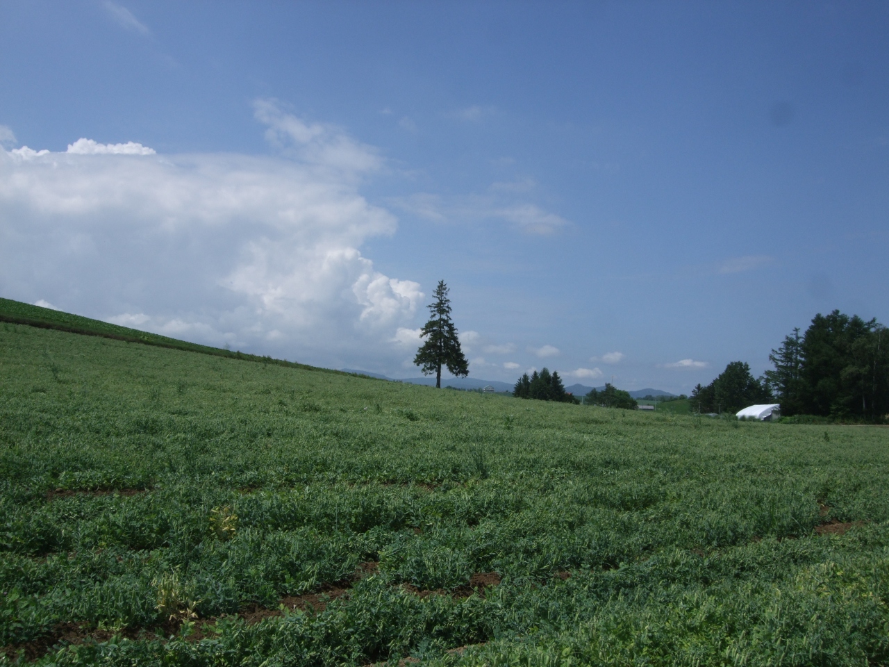 これも美瑛の丘の名所スポットの一つ。端正な姿がクリスマスツリーに似ているので、この名前がつきました。ただ、ほかにも有名な木がたくさんありますので、ちょっと人気は落ちるかも。この日、ほかではたくさんいた観光客もここでは見かけませんでした。カーナビにも登録されていなかったですし、地図だけで探すのは骨が折れるかもしれません。テレビだったかで見ましたが、この木は隣の農地との境界線だとか。確かに、この木がなければ境はわかりませんね。