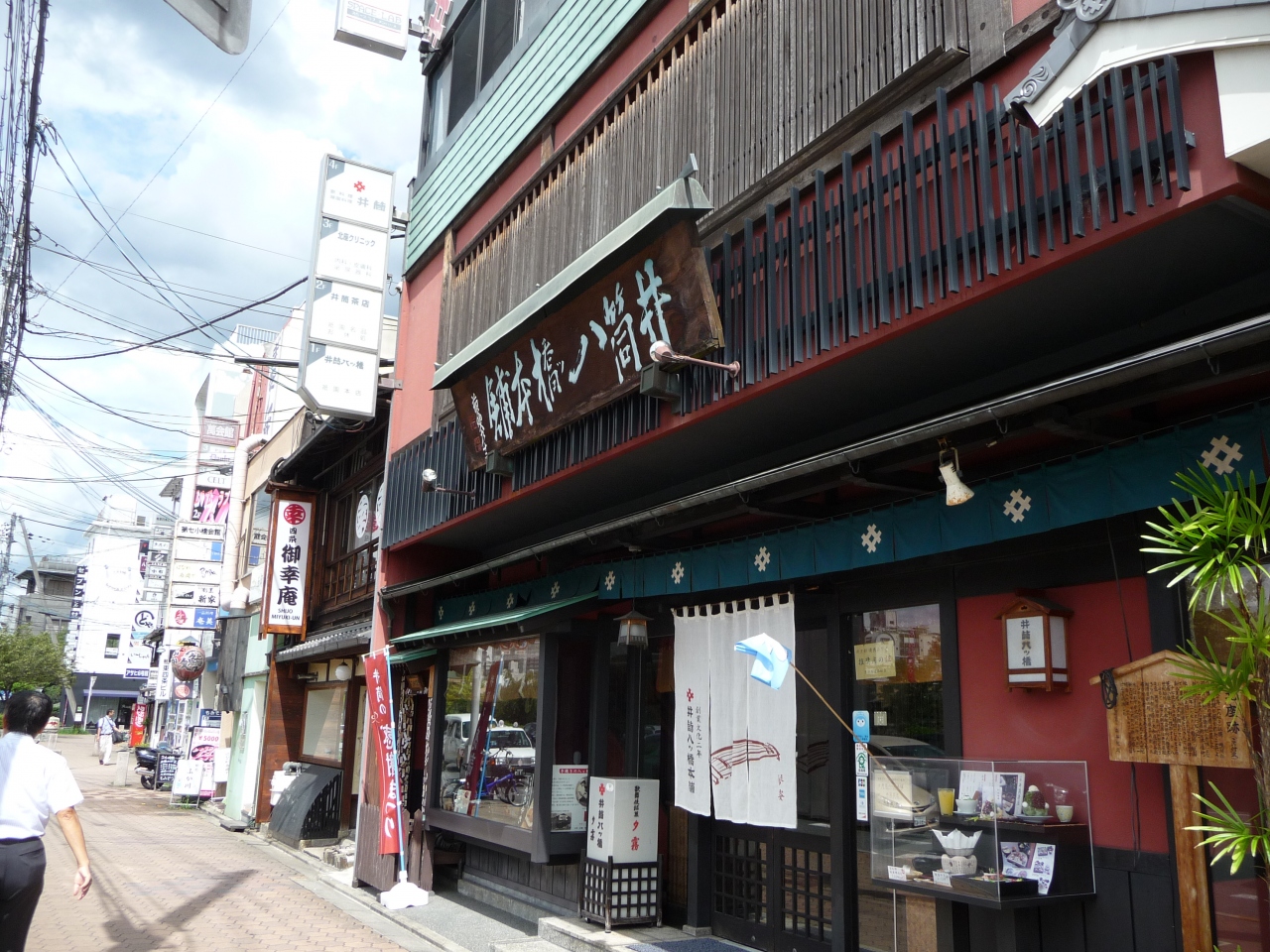 1805年創業の「井筒八ツ橋本舗」の本店になります。本店のみ限定販売品も数種類置かれているので、気の利いたお土産を買いにわざわざ来る甲斐はあります。広々とした店内にはお休み処も用意されていて、ゆっくりと選ぶことができます。