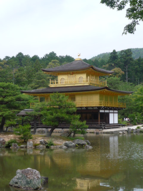 金閣寺(鹿苑寺)(きんかくじ ろくおんじ)は、元は鎌倉時代の公卿、西園寺公経の別荘を室町幕府三代将軍の足利義満が譲り受け、山荘北山殿を造ったのが始まりとされています。金閣を中心とした庭園・建築は極楽浄土をこの世にあらわしたと言われ、有名な一休禅師の父である後小松天皇を招いたりしたそうです。