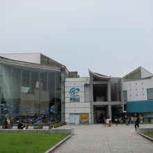 入口には、帆船のディスプレイがあり、またお土産屋さんもある。