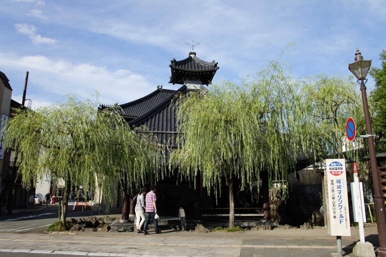 ここは、午後三時からオープン。なので、宿泊客が外湯めぐりをする場合は、宿泊のその日の夜に入ることになります。場所は城崎駅の隣り。入ると広めのスペースに内湯がいくつか。まあ、これでもいいかなと思ったら、二階に、滝や池を組み合わせた面白い趣向の露天風呂がありました。あと、休憩スペースがとてもゆったりしているのも、ここの特徴です。