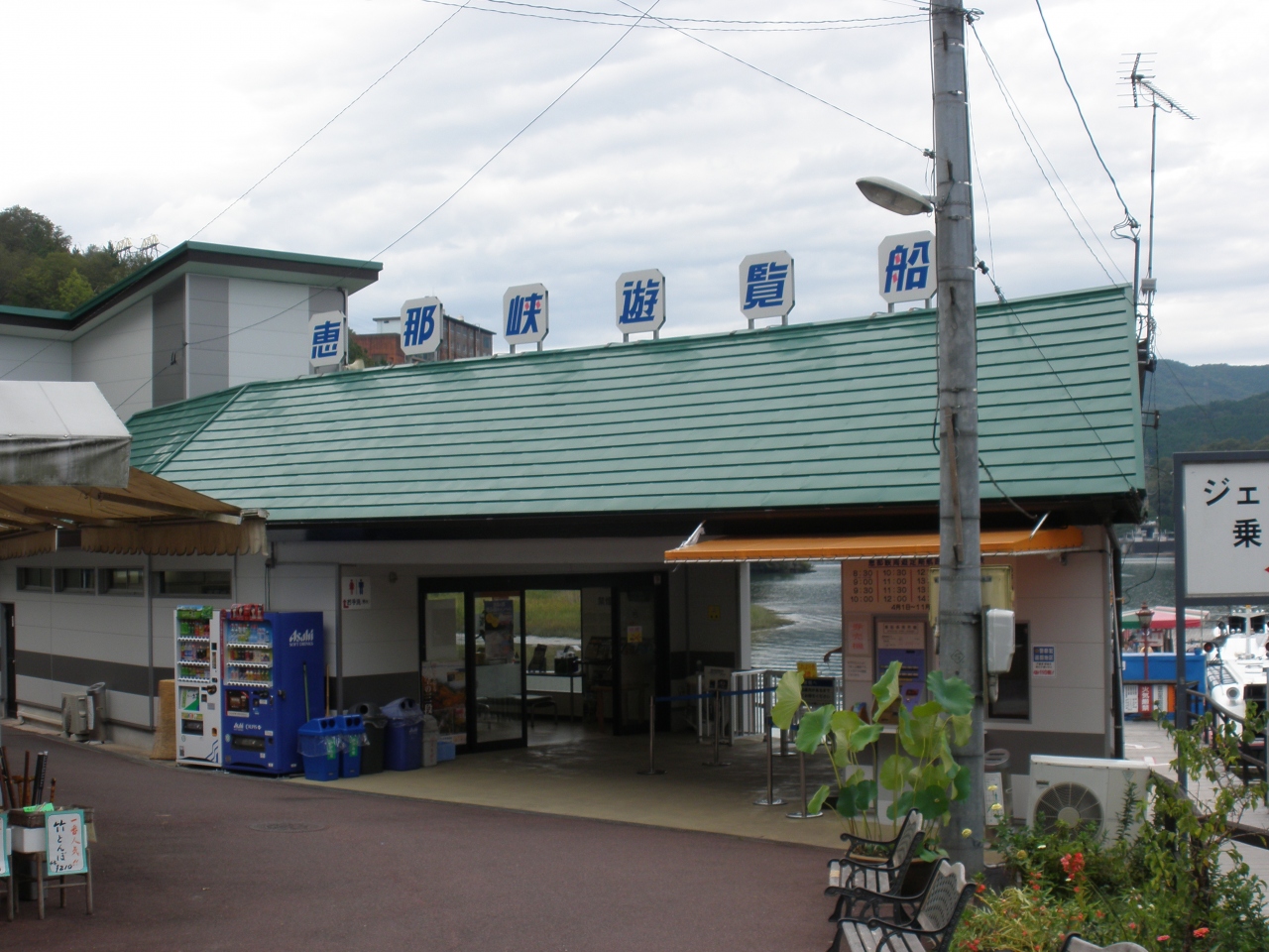 恵那峡遊覧船乗り場は、駐車場から少し急な坂を下りるとあります。