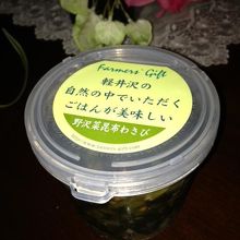 野沢菜を刻んだもののシャキット感と わかめのとろとろ食感 わさびの辛みが 絶妙です。白いご飯に のせていただくとやみつきです。