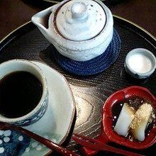 おかわりのコーヒーと黒蜜味のお団子がお皿に乗っていました。