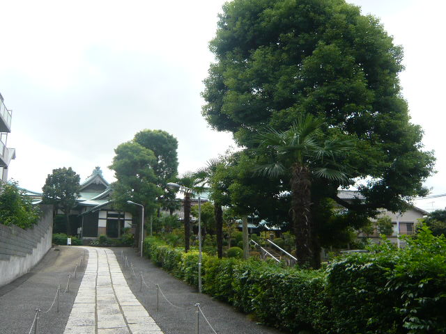 千駄木駅から北へ三崎坂を登った寺院が集中するエリアにあります。三崎坂に面した山門をくぐると、長い坂道を登って、ようやく本堂等の建物が建っているエリアに辿り着きます。本堂の奥には墓地もあり、この辺りではかなり敷地が広いお寺だと思います。