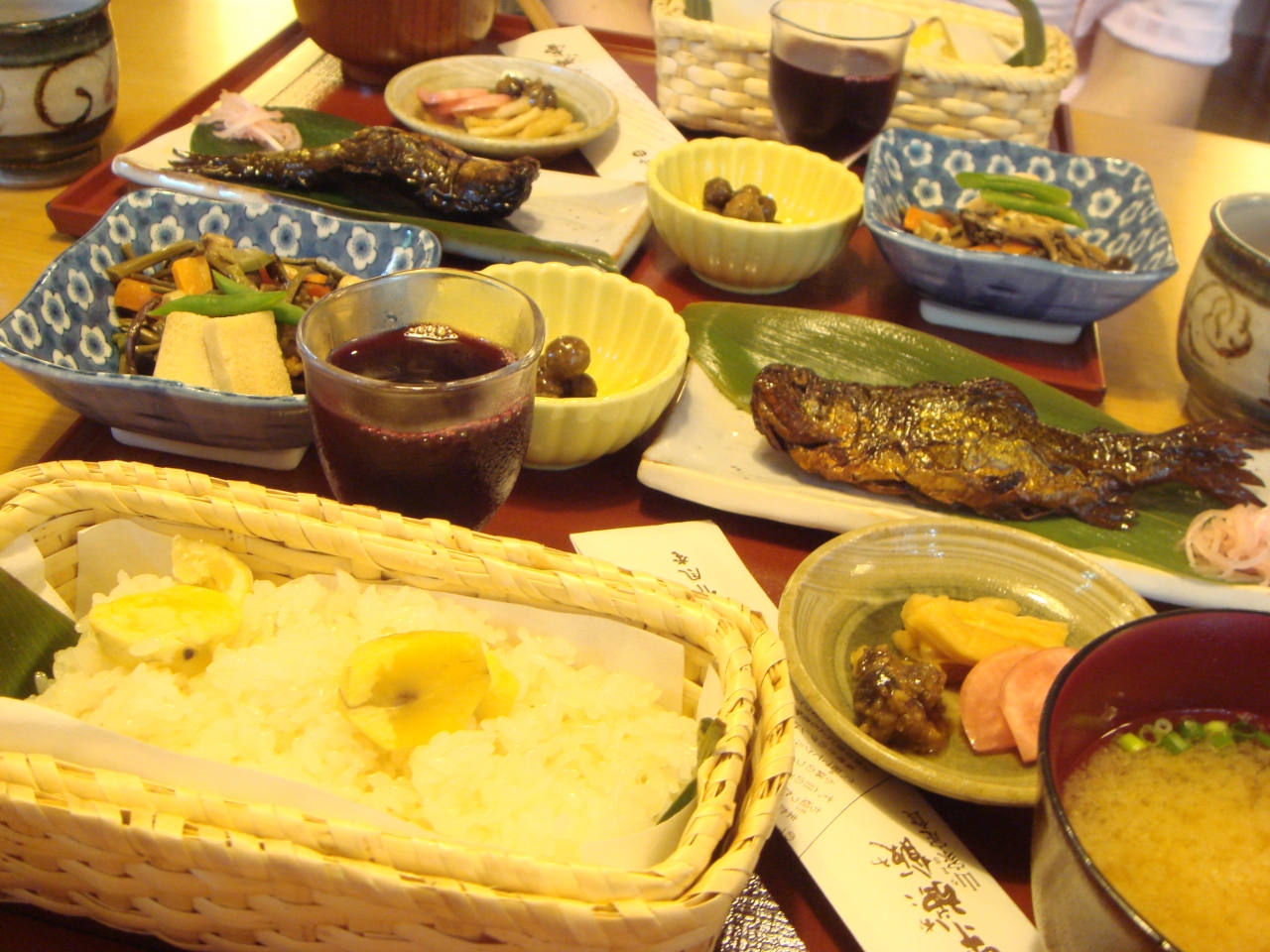 注文したのは山家(やまが)定食。にじますの甘露煮やむかごのくるみ和えなどが出てきます。おこわ以外のお料理も美味しいです。