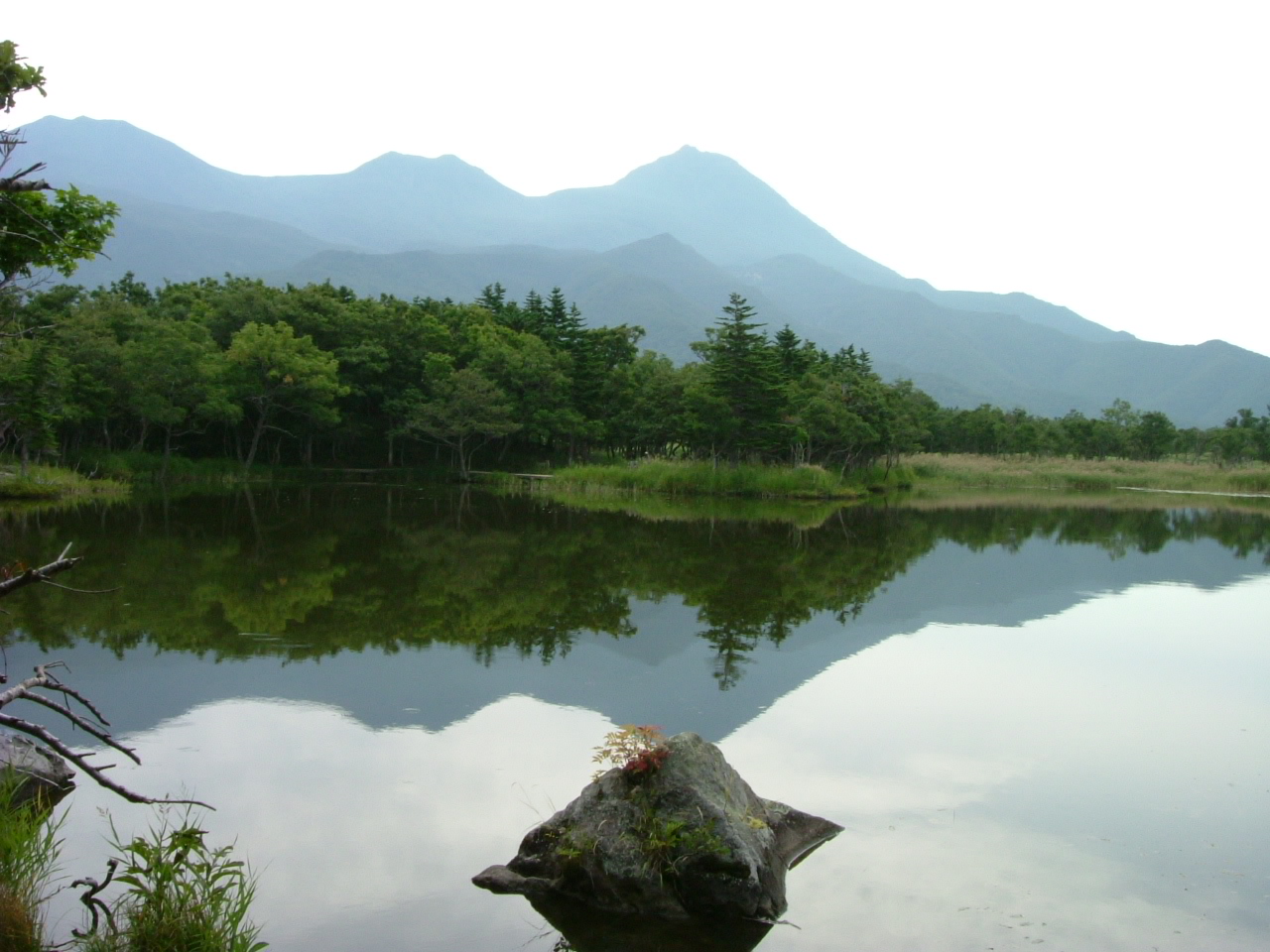 知床五湖は、年間約50万人が訪れるという知床八景の一つ。原生林に囲まれてたたずむ幻想的な5つの湖は一湖から五湖までの名前がついていて、それぞれに違った雰囲気もあります。なお、写真は、第一湖と静寂な湖面に映った知床連山。その姿は、まさに原始の中の楽園でしょう。立派に整備された高架木道なども利用して、5つの湖を一周できる遊歩道がありますが、ただ、周囲は、ヒグマの生息地域。観光客が多いので必要以上の心配は不要ですが、それなりに気をつける必要があります。