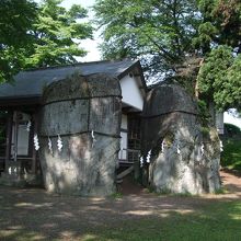 三ツ石神社は、岩手の名前の元になった「鬼の手形」の石があるというので、訪ねました。神社は、何の変哲もないのですが、境内の奥に、きょっきりと生えたような石が二つ並んで立っている様は、異様ではありますが、ちょっとにやりとしてしまいました。丸い形は、川でもころがって出来たような形なのに、平らな土地の上にあって、不自然には違いありません。暴れる鬼をこの石に閉じ込めようとしたのですが、あんまり泣いて謝るので、もうここには帰って来ないという約束の手形を石に残したという昔話。かわいらしい話でもあります。