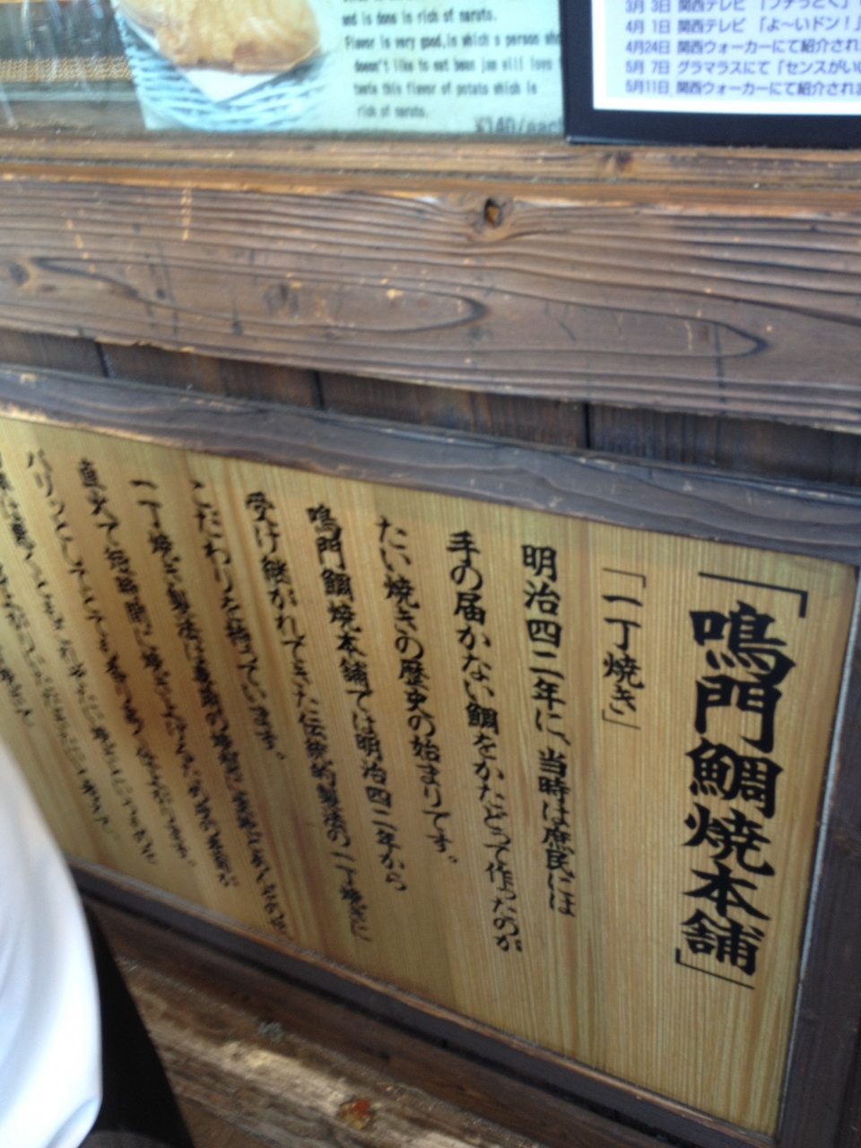 天然たいやきの鳴門鯛焼本舗(ナルトタイヤキホンポ)のたい焼きです。袋自体もこだわりを感じる事のできるそんなお店です。そもそもは、明治時代、とても価格の高い、鯛に対して庶民の思いをこのようなお菓子で解決する為、そんな歴史があるようです、とても美味しいのでぜひ、一度。