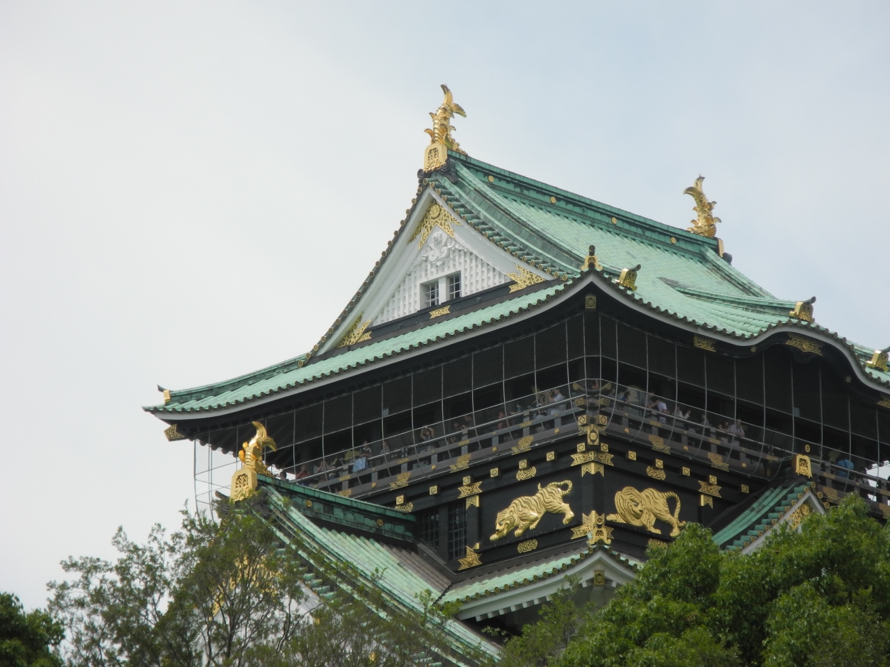 大阪城天守閣 (おおさかじょうてんしかく)は、外観の細部にこだわった彫り物が気に入ってます。虎の彫り物は、いまにも襲ってきそうな雰囲気を醸し出していて、誰もちかずきたく無くなるようなそんな感じの彫り物です。また、鯱も金ぴかになっています。ぜひ。