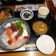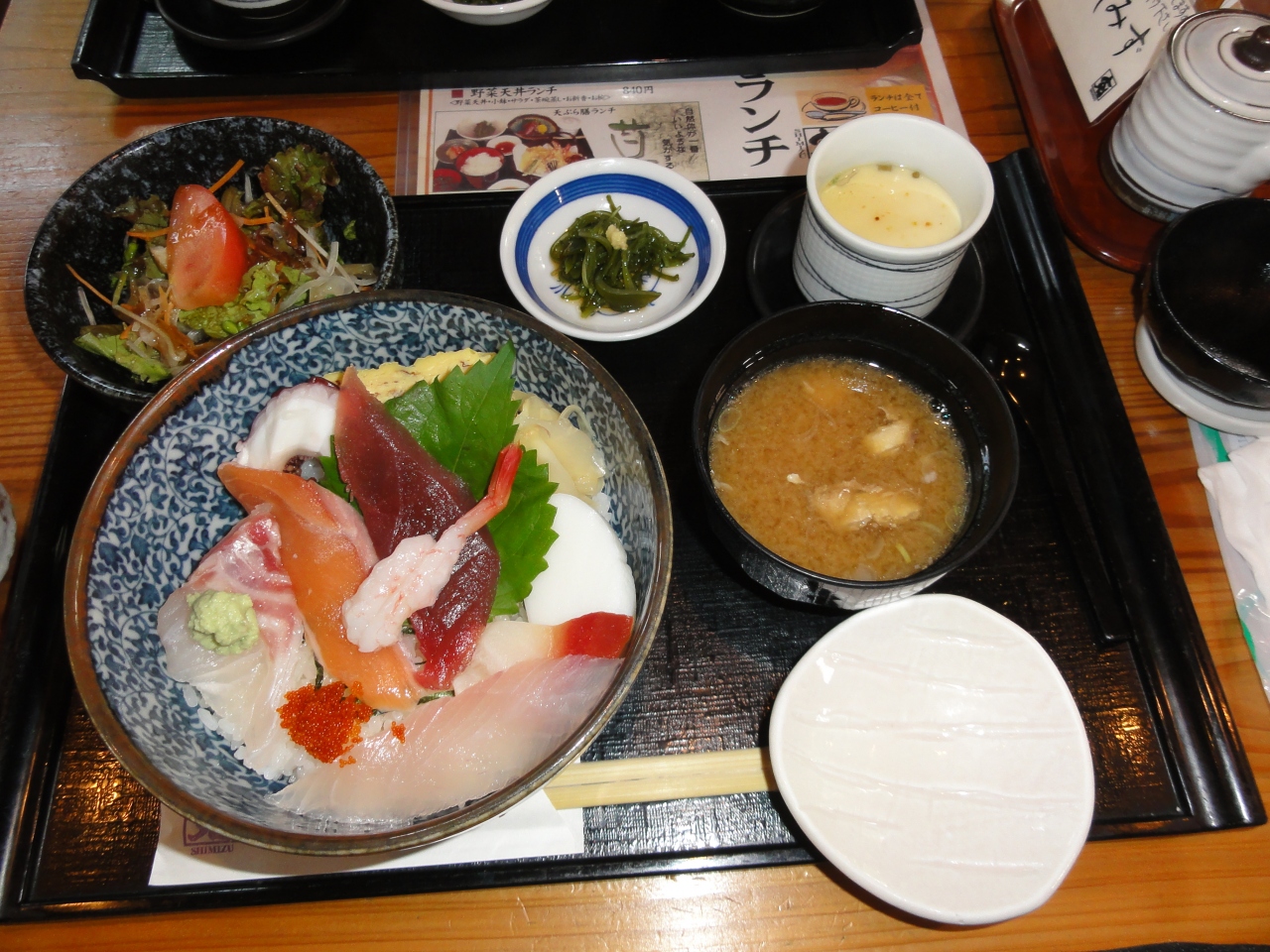 メニューは以前と変化なく、ちらし寿司ランチ¥840にしました。(鮭フライをプラスすると¥1050になります。)サラダ、ワカメの酢の物、茶わん蒸し、みそ汁、ちらし、食後にアイスコーヒーを美味しく頂きました。お寿司はネタも新鮮です。ほうじ茶も美味しくてお代わりしました。会計時、レジそばで無料の「天かす」も貰えます。