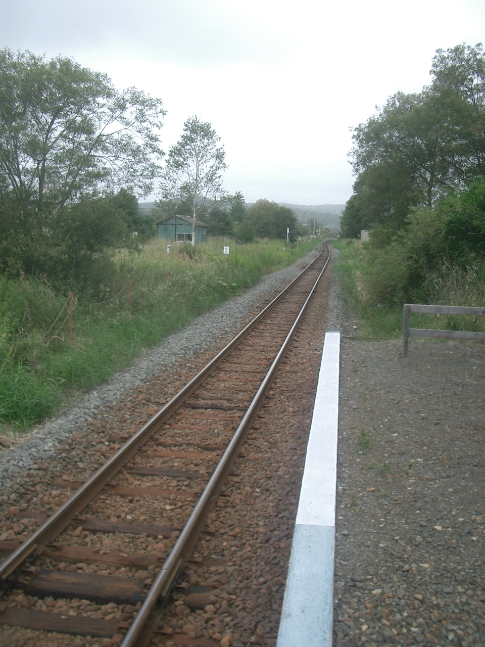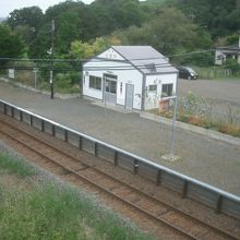 もちろん無人駅。東側は国道391号線が走っていますが,西側は閑静な住宅街になっています。西側にむかしは旧道が走っていたのでしょう。駅は東側が正面。駅前に小さな広場があります。この広場を利用して,警察が「ネズミ捕り」をやっていました。