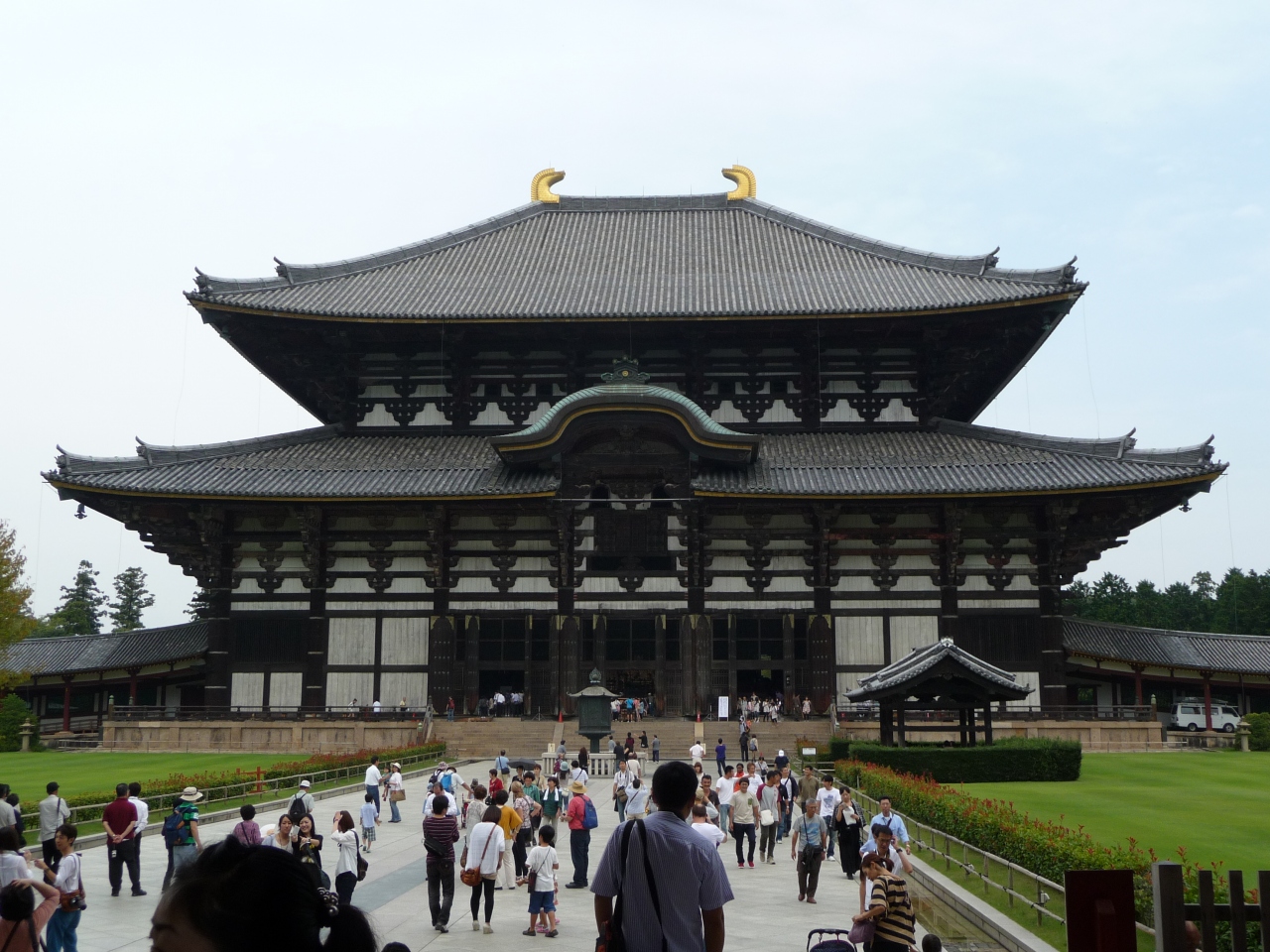 奈良の大仏殿は木造軸組建築では世界最大の建物で、現在の大仏殿が完成したのは1691年です。正式名称は「東大寺金堂」ですが、「大仏殿」のほうが広く一般的に知られています。子供のころも圧倒されましたが、現在でもその堂々とした存在感は変わっていません。