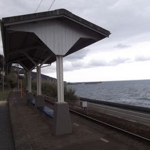 そこから見える伊予灘とホームのバランスがなんとも言えないぐらい素晴らしいというか、画になりますね。