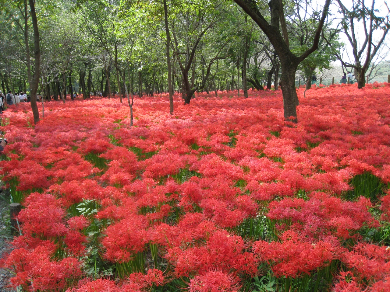公園に入らなくても周囲でそれなりに曼珠沙華を見ることはできますが、やはり200円払って公園に入るとその広くて赤い絨毯に圧倒されるでしょう。