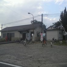 国道192号線から、北側に500Mほど進んだ場所にあります。駅はこじんまりとしていて、契約車以外は車を停められないので、狭い駅前のスペースだと、迎えにいくのはやや困難ですね。なお、駅の左側に、飲食店は1店たたずんでいます。