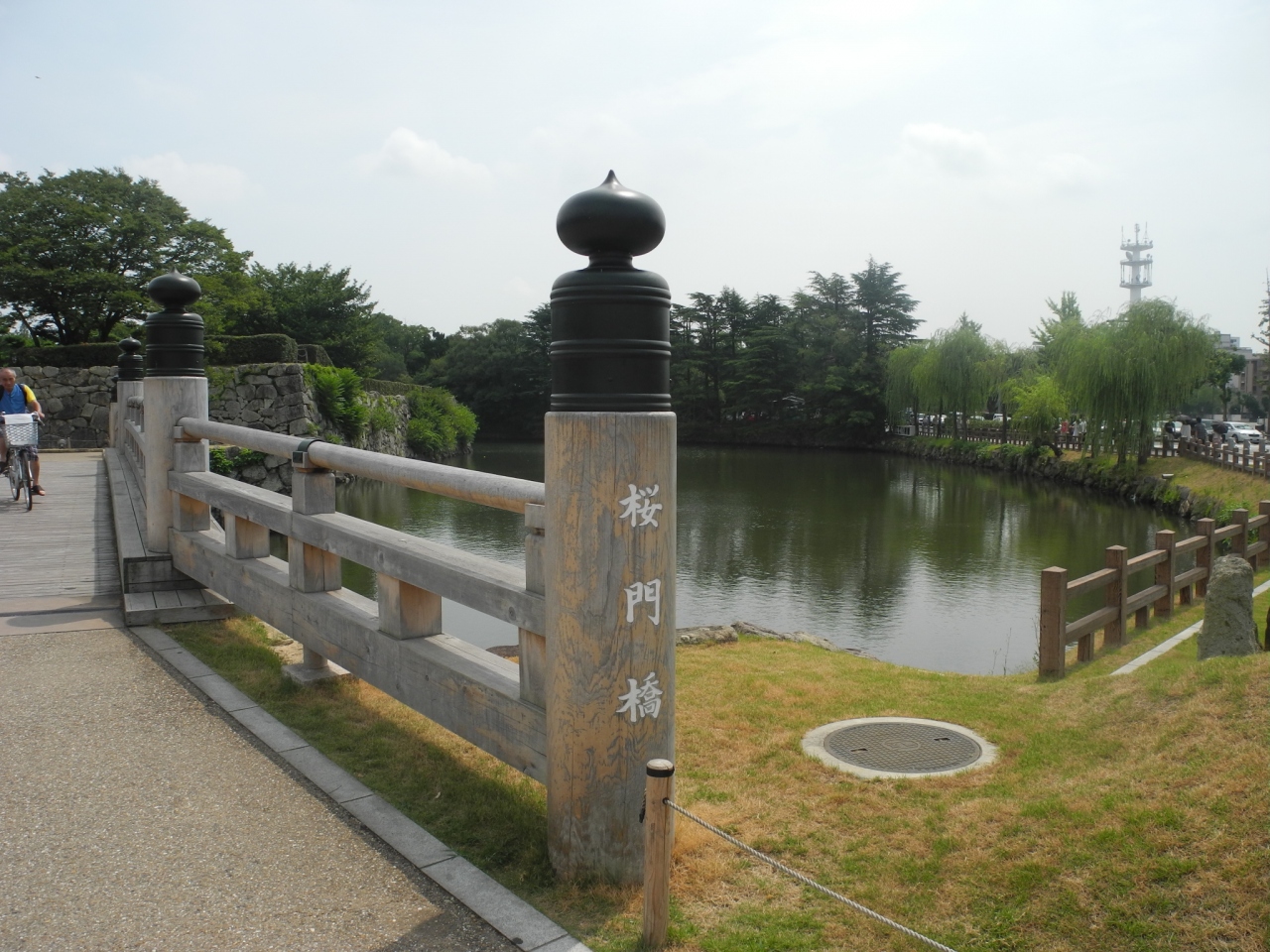 姫路城の大手門前の内堀に2007年に「桜門橋」が完成しました。橋の長さ二十二メートル、総事業費約二億円。鉄筋コンクリート製の橋ですが、全体にヒノキの化粧板が張ってあって、外観は木でできた橋のように見えます。ぜひ、一度、利用してみては、