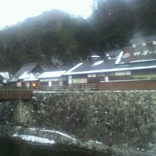 国道193号線沿いにあり、清流沿いに連なる温泉街です。