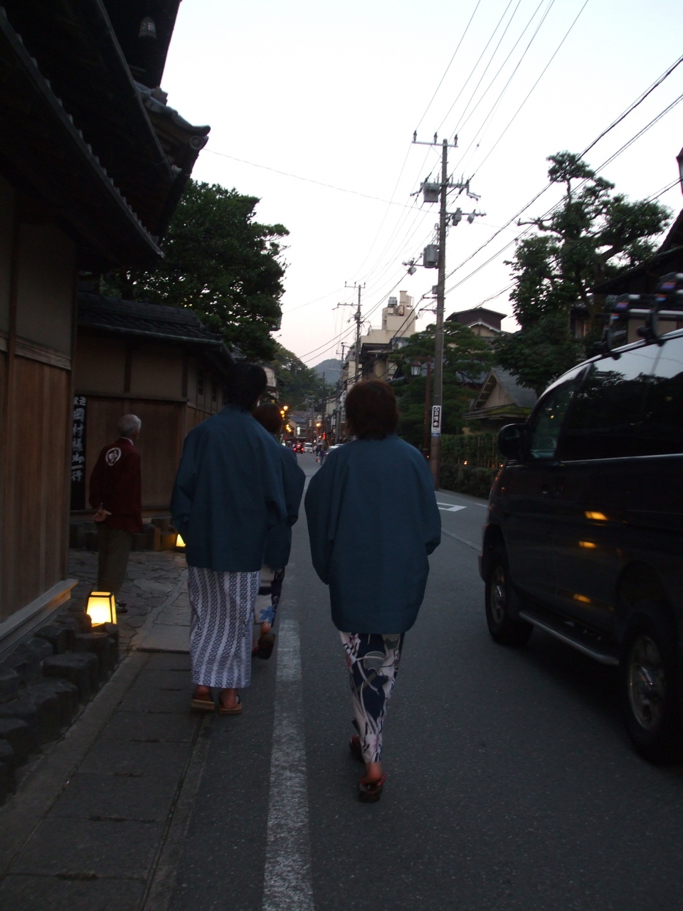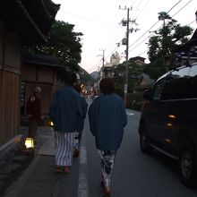 夕暮れから夜にかけての灯りがともる落ち着いた雰囲気の中、浴衣を着て散歩するだけでも気分が上がりますよ!