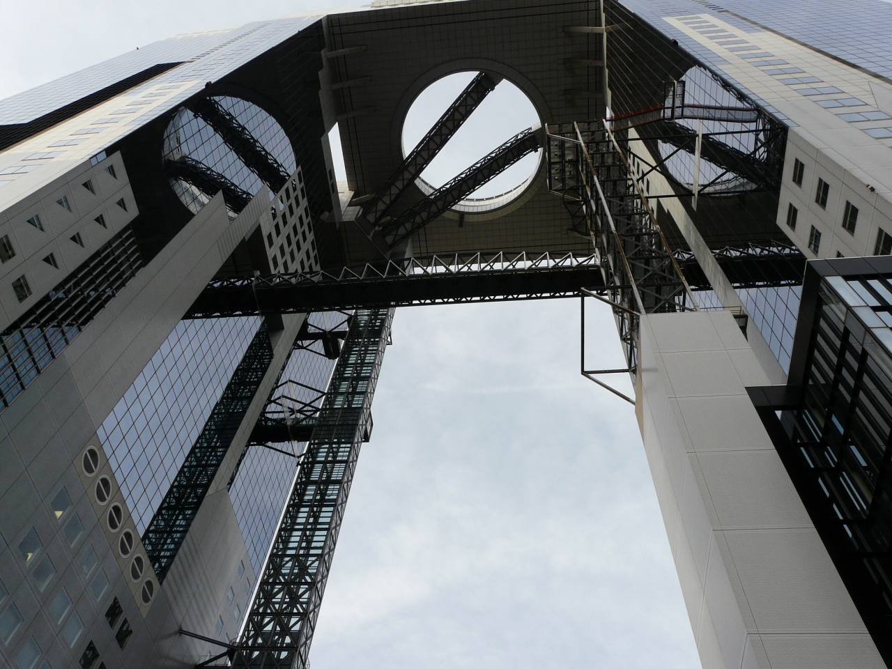 スカイビルは、あまり便利の良いところではありませんが、ヨドバシカメラ側から、線路の下の地下道を通って行くのがが近いと思います。