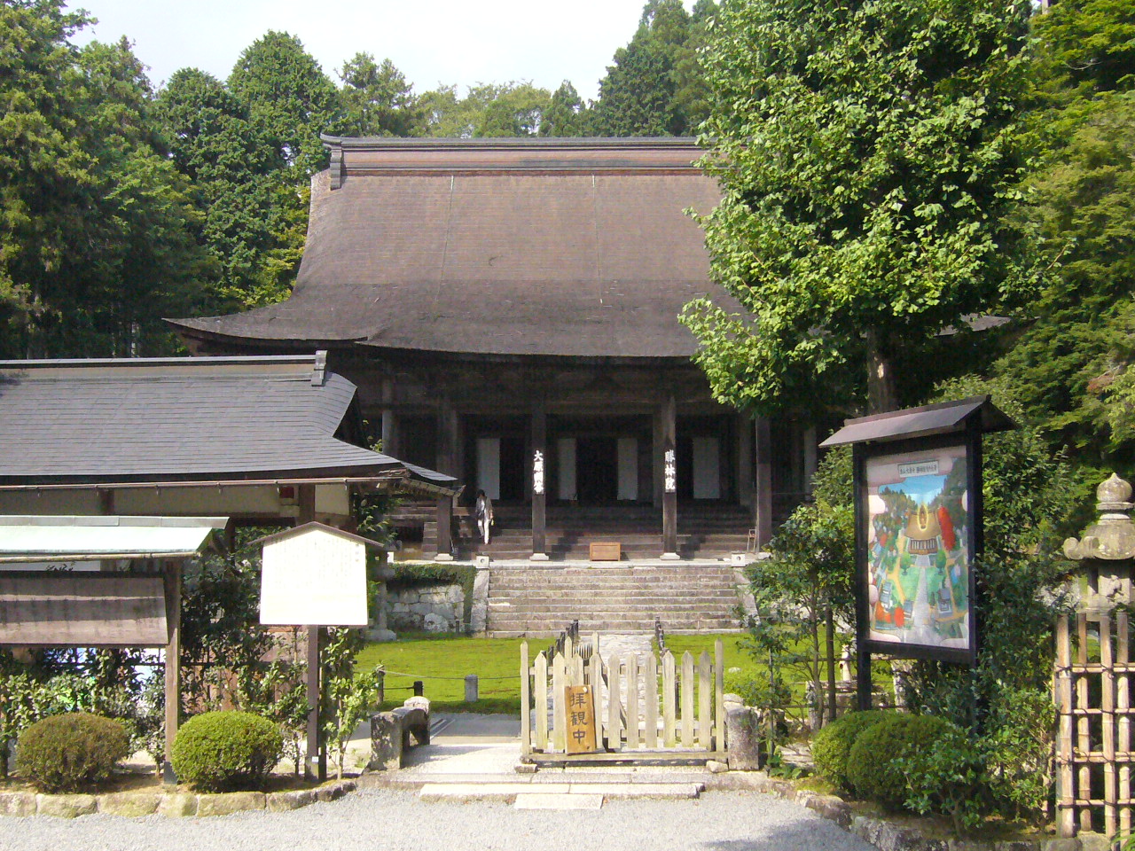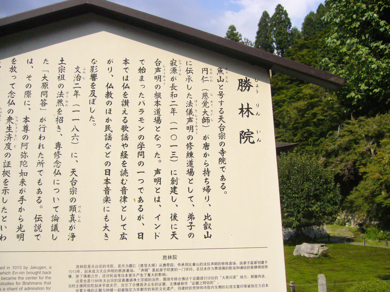三千院から宝泉院に行く途中にあり、大原談義(大原問答)の場所として有名なお寺です。、法然上人は念仏を唱えれば誰でも往生できると主張し、その教えに疑問を唱えた顕真が念仏論議を行ったとされます。境内にあります鐘楼は、江戸時代前期のもので京都の有形文化財に指定されています。