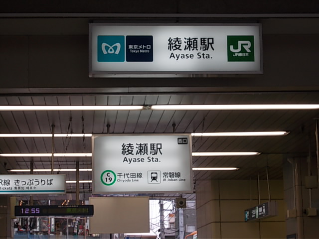 北海道在住の私が都会の駅に降り立って驚かされるのが、この綾瀬駅のような両方の駅の改札が一緒になっている駅です。こういう駅の場合、JRのフリー切符(自動改札を通せないタイプ)の扱いが気になってしまいます。地下鉄の職員らしき人にJRのフリー切符を見せても、認知されていない場合があったりして、何となく気まずい雰囲気になったりすることで、私は逆に”都会”を感じたりしています…。