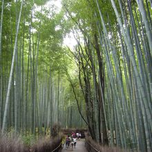 天龍寺の北門から両側に高い竹が生い茂る竹林の道は有名。ここは撮影にも使われたとか。暑い夏でもここを通ると気持ちがさわやかになり、心地よい風と、竹の葉音が聞こえてきて、この風景を見ているとまるで別世界にいるようだ。