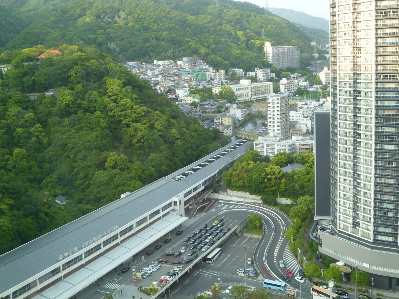 新神戸駅は神戸市の山手にあり山陽新幹線のみが停車します。神戸市営地下鉄の三宮等への路線があります。お土産品を販売する大きなキオスクがあって結構賑わっていました。周囲は高層マンション等住宅も多く、高級住宅地でした。