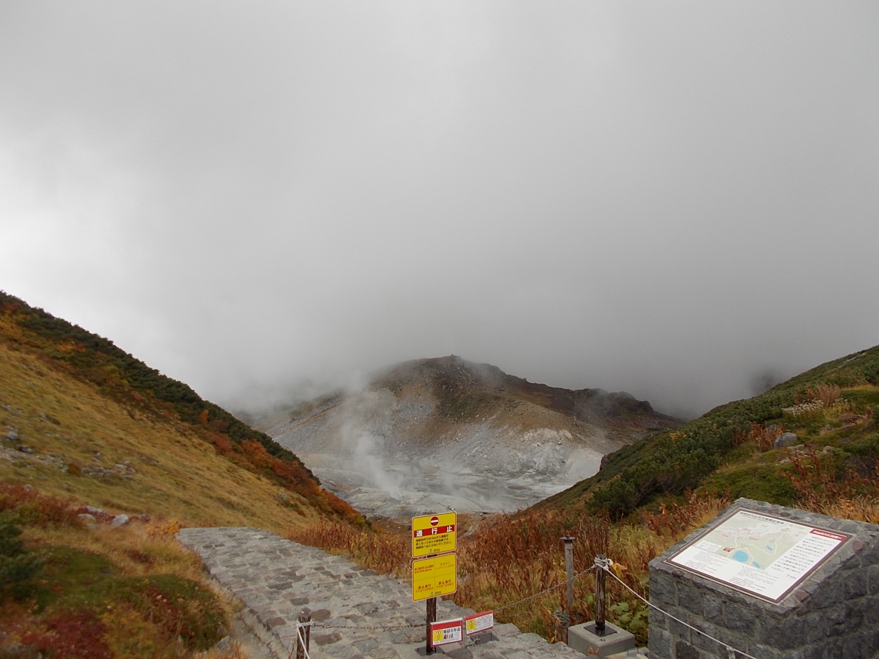 室堂から地獄谷へ行くのですが、ガスが大量に発生しているため、私の時は行くことができませんでした(平成24年10月5日現在)。エンマ台展望台から眺めるようにと指示がありました。