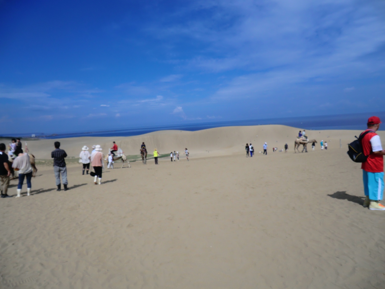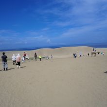 砂丘の砂はとてもきめ細かい、しかも天然記念物だから厳密に言うと持ち出し禁止。パンプスやスニーカーでも歩きづらく、細かい砂が靴の中に入ってしまいます。リフト降り場のわきで、無料の長靴を貸してくれます。管理人もいないので自己責任ですあまりカッコはよくないのですが、靴に砂が入って汗にまっ見れて・・ということを思うと快適です。