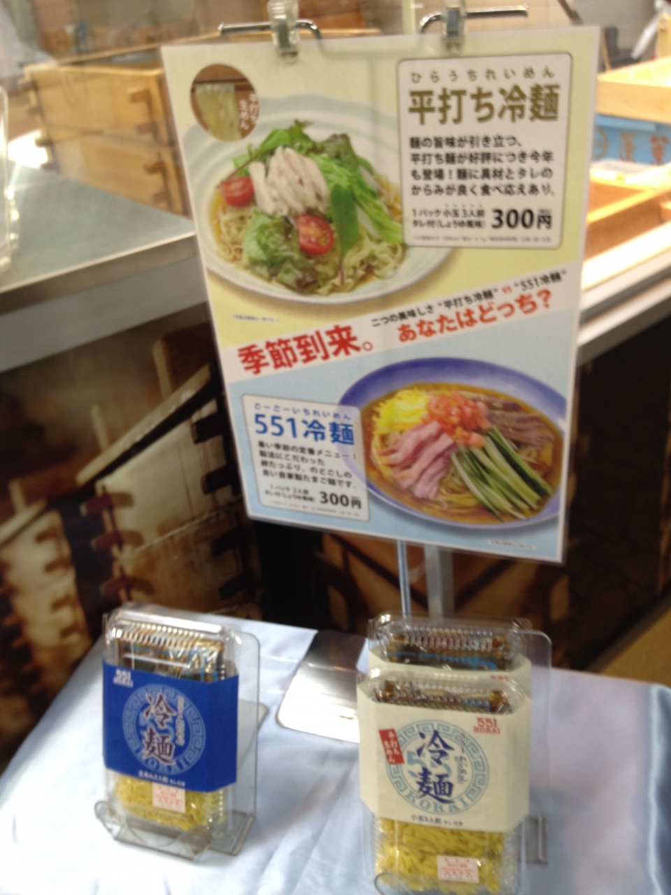 551蓬莱(ゴーゴーイチホウライ)では、夏季限定ではありますが、平打ち冷麺がおいしく食べれます。551冷麺と食べ比べてもいいかと思いますが、おすすめは、平打ち冷麺です。ハムとたまごと一緒に食べるとより一層おいしいです。