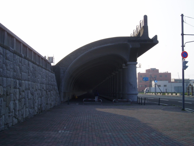 強風と荒波を防ぐ防波堤なのですが、半アーチのトンネルになっていて珍しい形です。