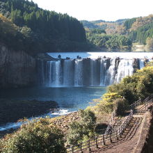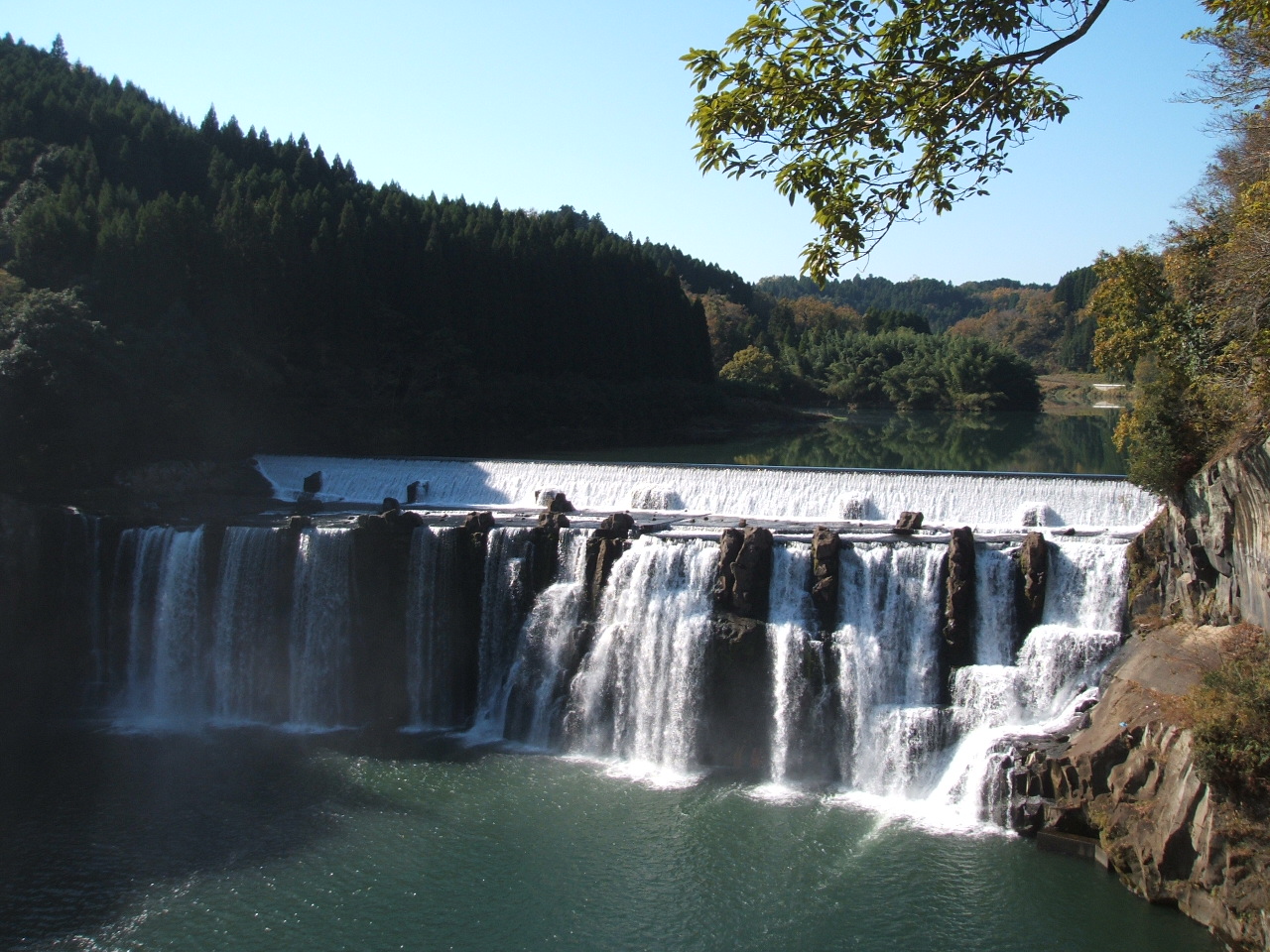 私達が見に行った雄滝は、幅100m余り、高さ20mです。沈堕の滝には雄滝の他に雌滝もあります。雌滝は大野川の支流の平井川にかかっており、幅4m、高さ18mです。