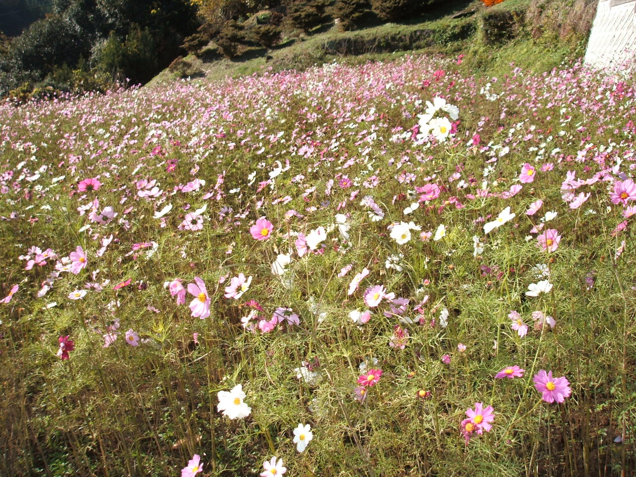 沈堕の滝(雄滝)は、滝の下近くまで行ける遊歩道があるというので、行って見ました。遊歩道の周辺にはのコスモスが咲いていました。